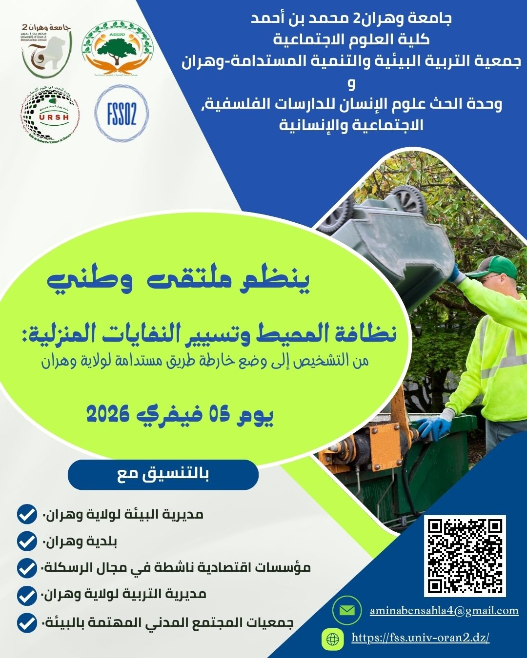 تاريخ انعقاد الملتقى:05 فيفري 2026، بكلية العلوم الاجتماعية-جامعة وهران2 محمد بن أحمد